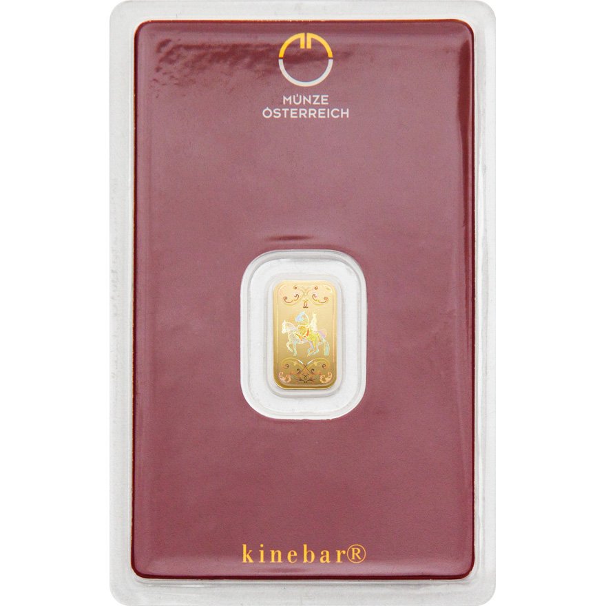 Den eksklusive Münze Österreich 1 g guldbarre Kinebar® er en ideel kombination af sikkerhed, kvalitet og æstetik. Fremstillet af 99,99 % rent guld (24 karat) og produceret af det anerkendte Austrian Mint (Münze Österreich), er denne lille barre et perfekt valg til både nye og erfarne investorer.