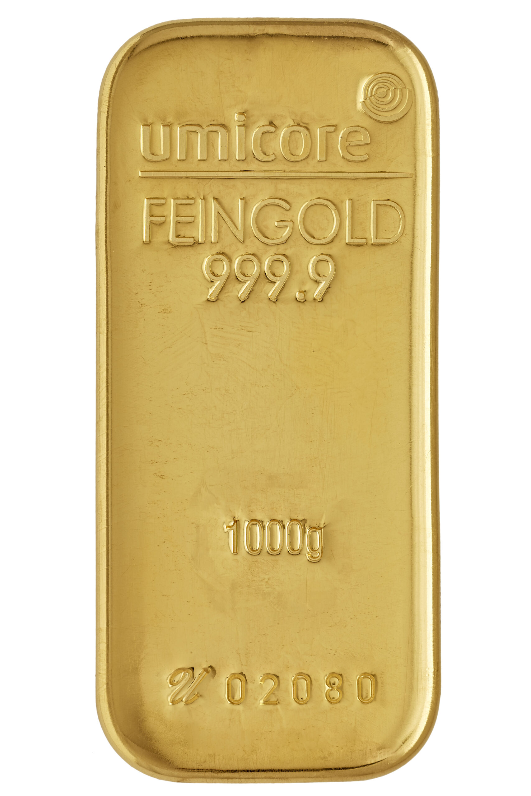 Denne Umicore 1000g guldbarre er støbt i Umicores barforme i rå form. Alle gulbarrer er stemplet med hver deres unikke guldbare-numre, som er er registreret hos Umicore og er LBMA godkendt. Disse numre relaterer sig til produktionen og oprindelsen af guldbarren.